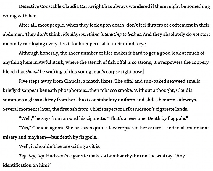 You’ll also likely have spotted that I’ve got first person present tense in one project and third person present in the other. The one titled Sector 26 is a WWII vibes post-apocalyptic with monsters. The other (titled The Hand That Feeds) is a 1920s vibe detective story set in a fantasy city where gods are at war.