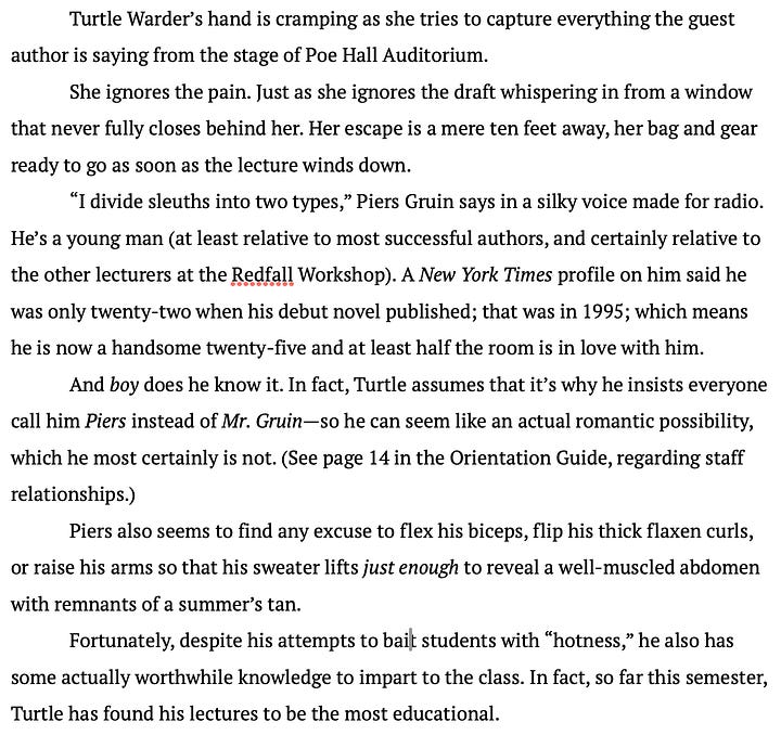 Last example, for something more “modern.” These are two screenshots from my upcoming Murder Quartet series. Although each book in that series is a romantic mystery horror set in an alternate 90s with ghosts and murder, each book also stands alone.