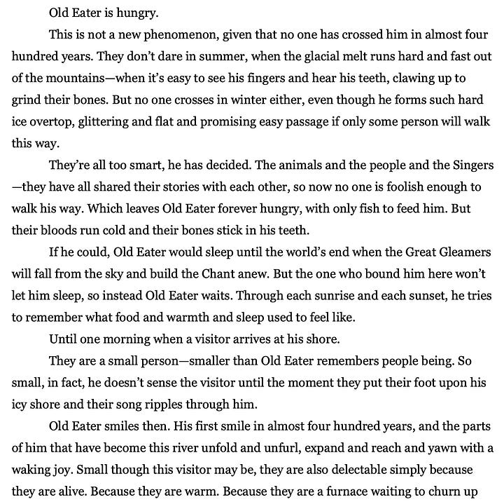 I’ll give you some examples. Below, I’ve got the opening chapter of Witchlight and another epic fantasy I’ve been chipping away at for a few years called The Alchemist and the Nightsong.